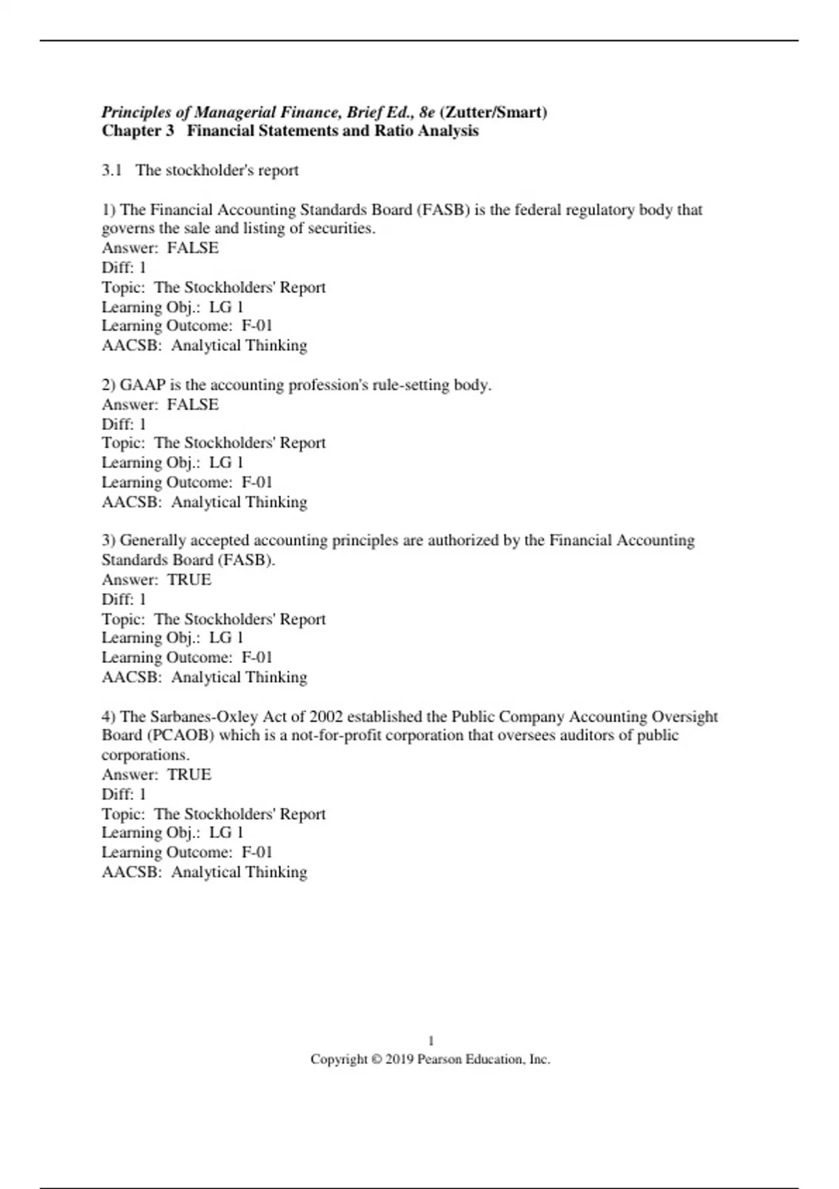 1) The Financial Accounting Standards Board (FASB) is the federal regulatory body that