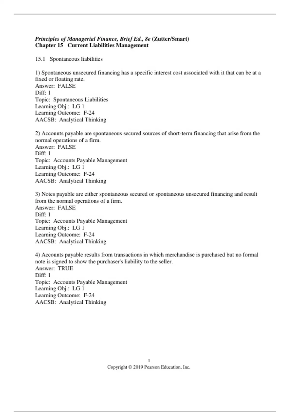 2) Accounts payable are spontaneous secured sources of short-term financing that arise from the