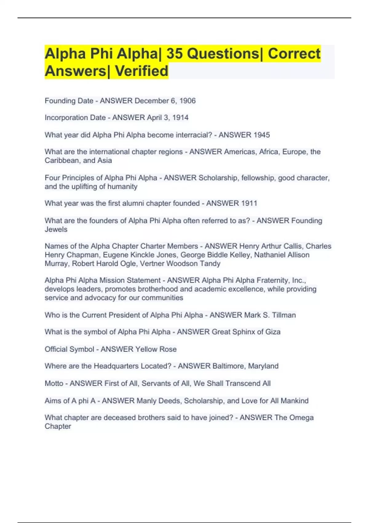 Alpha Phi Alpha| 35 Questions| Correct Answers| Verified