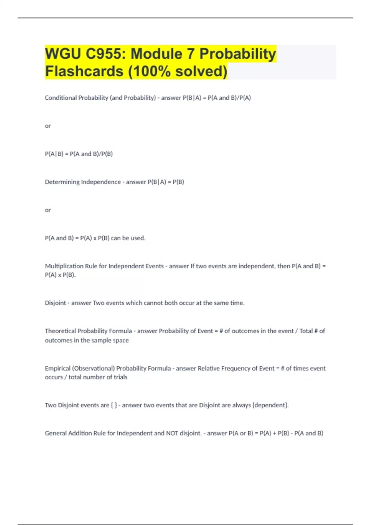 WGU C955 Module 7 Probability Flashcards (100% solved).