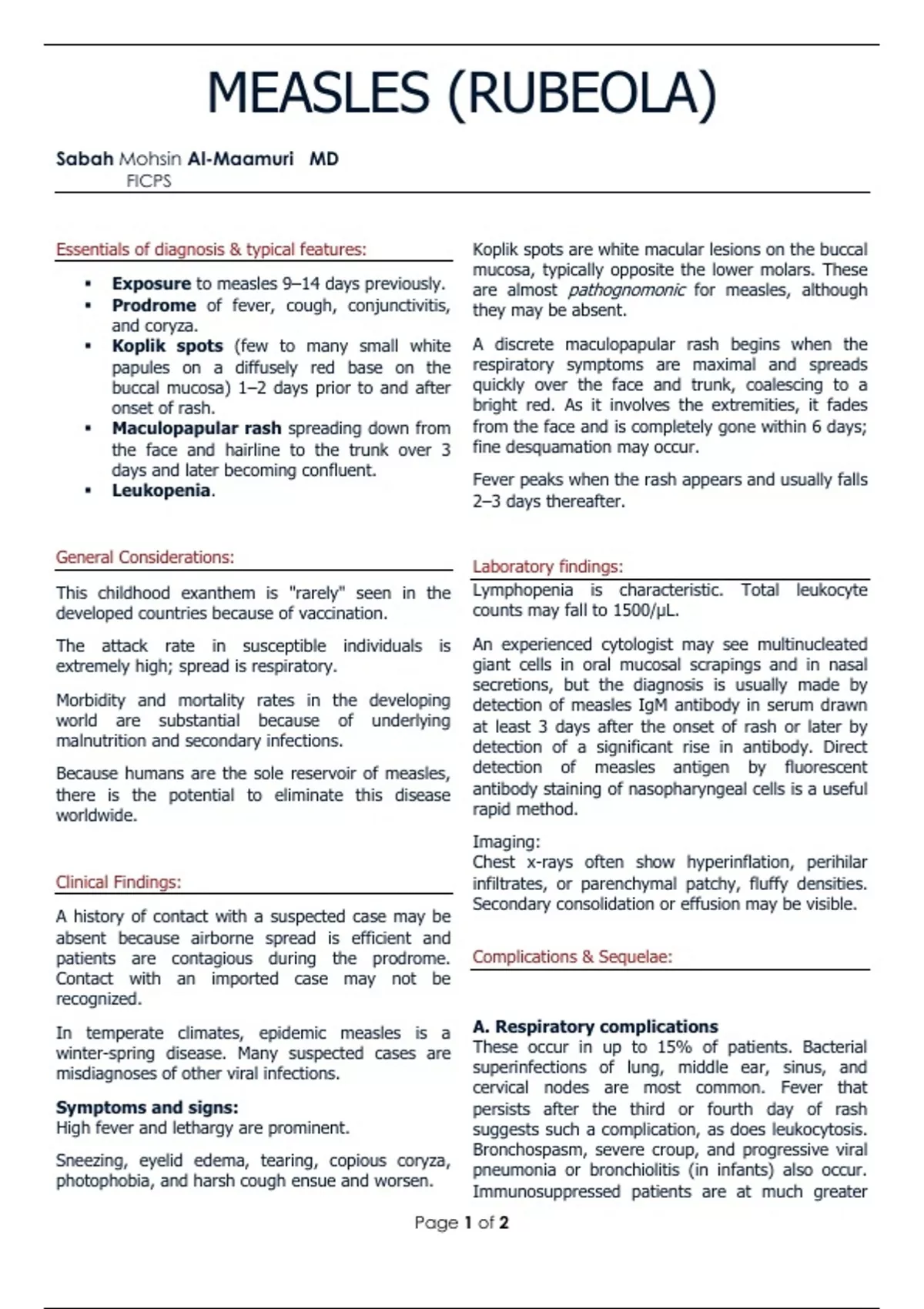  Koplik spots (few to many small white A discrete maculopapular rash begins when the