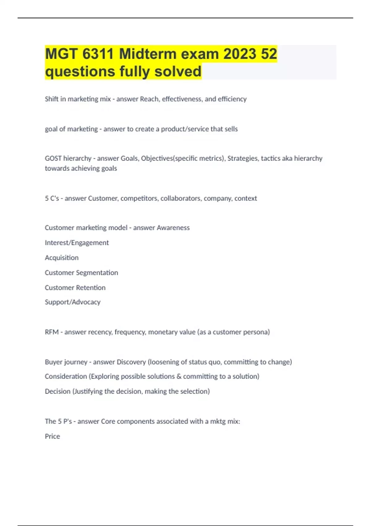 MGT 6311 Midterm exam 2023| 52 questions fully solved.