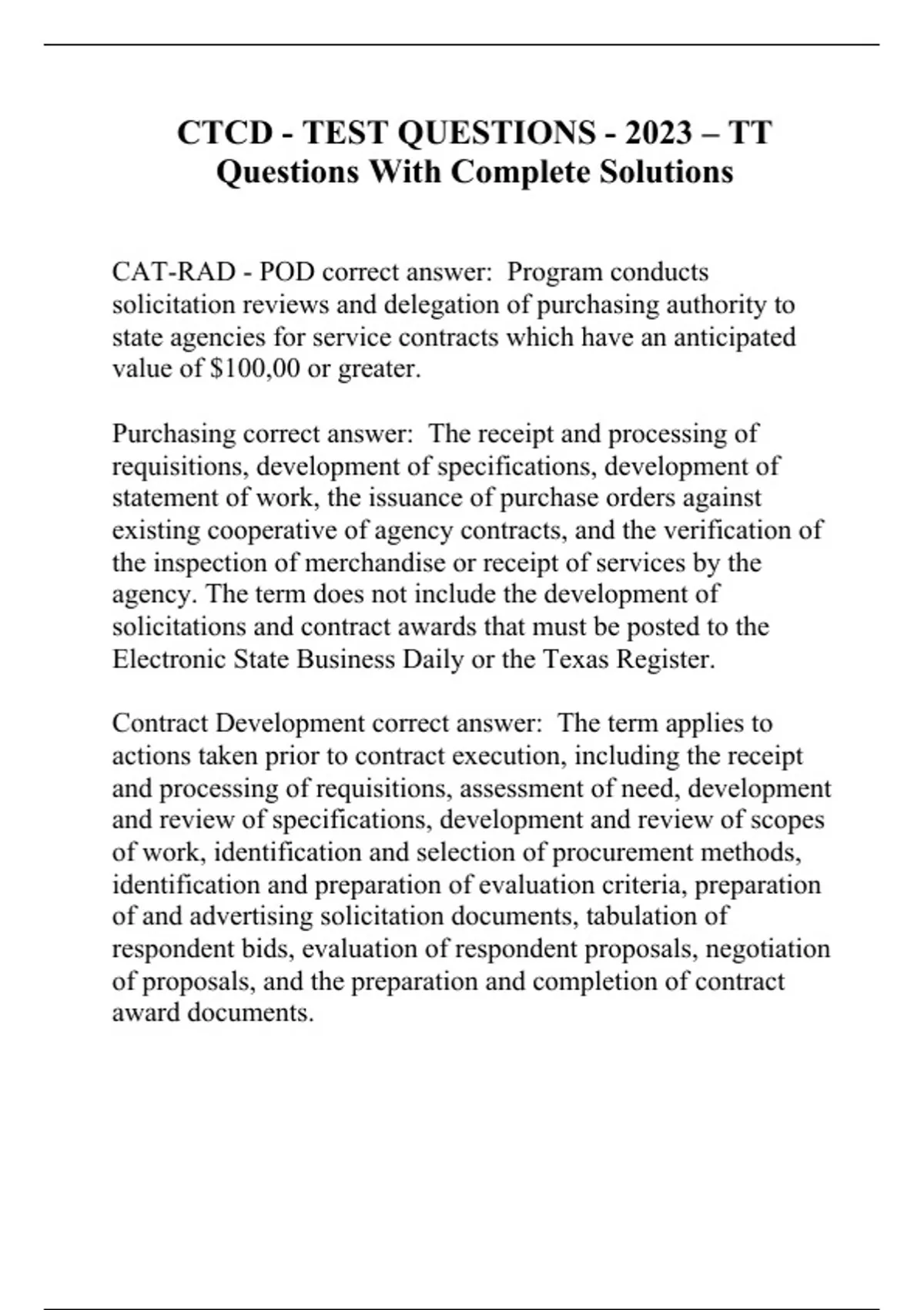CTCD - TEST QUESTIONS - 2023 – TT Questions With Complete Solutions