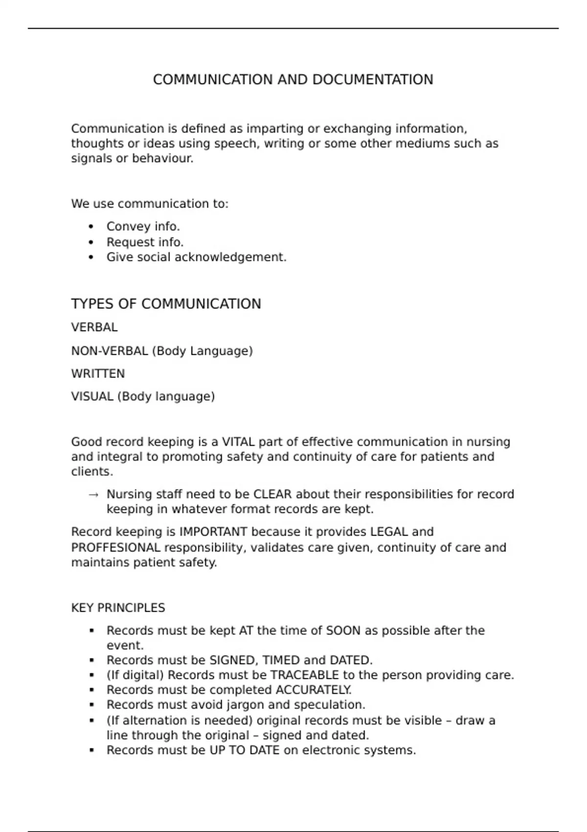 PROFFESIONAL responsibility, validates care given, continuity of care and