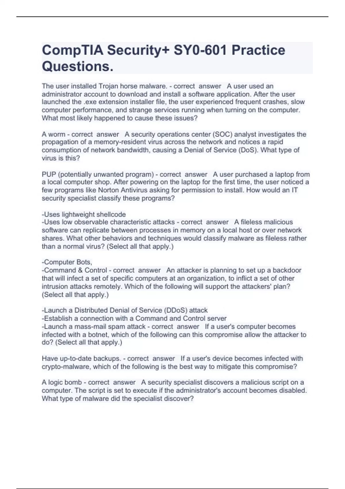 A worm - correct answer A security operations center (SOC) analyst investigates the