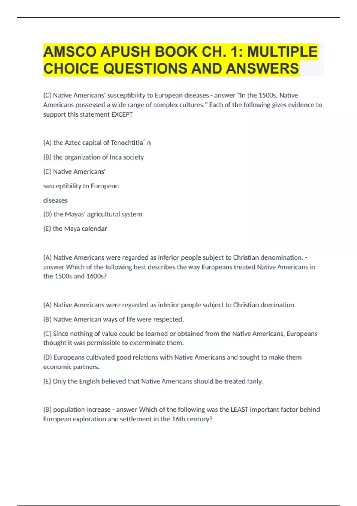 AMSCO APUSH BOOK CH. 1: MULTIPLE