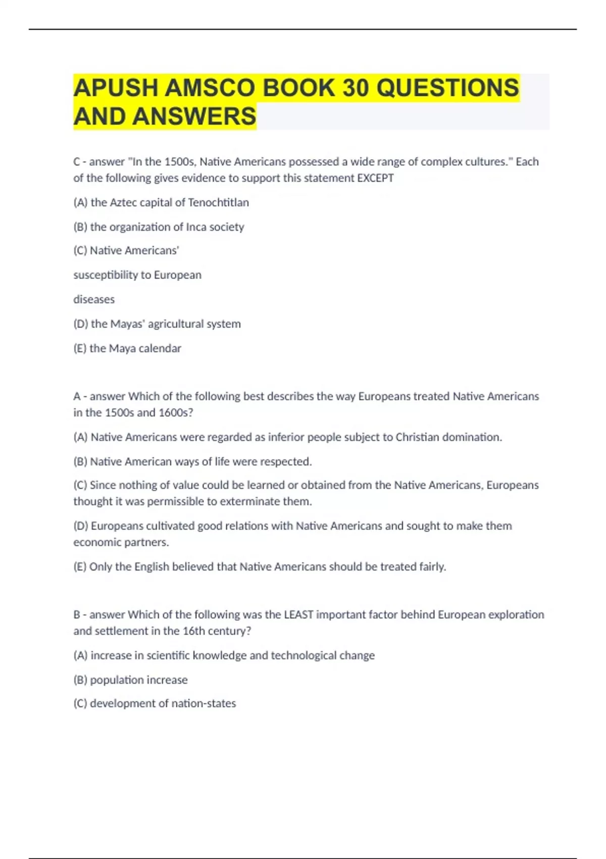 C - answer "In the 1500s, Native Americans possessed a wide range of complex cultures." Each
