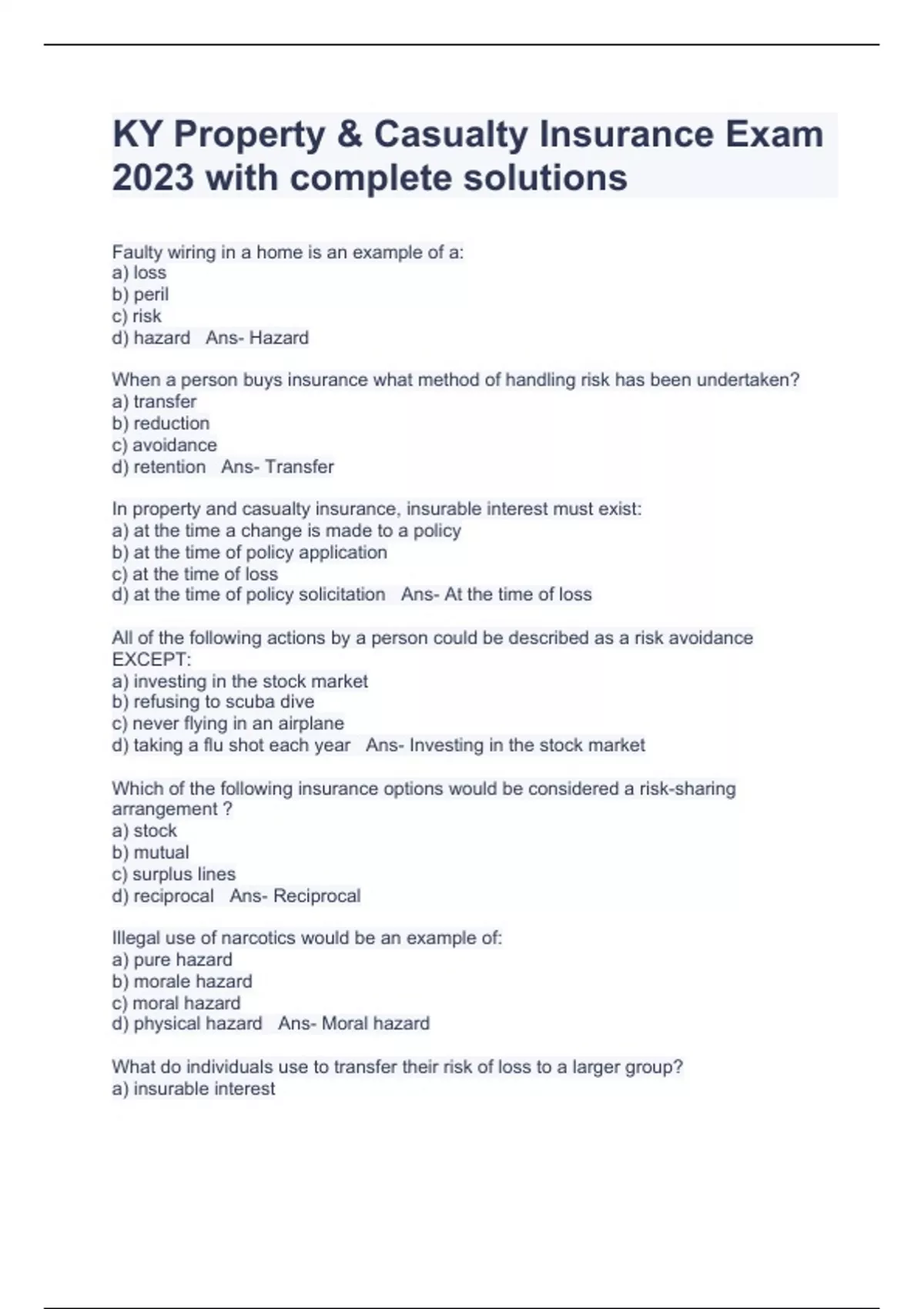 KY Property & Casualty Insurance Exam 2023 with complete solution
