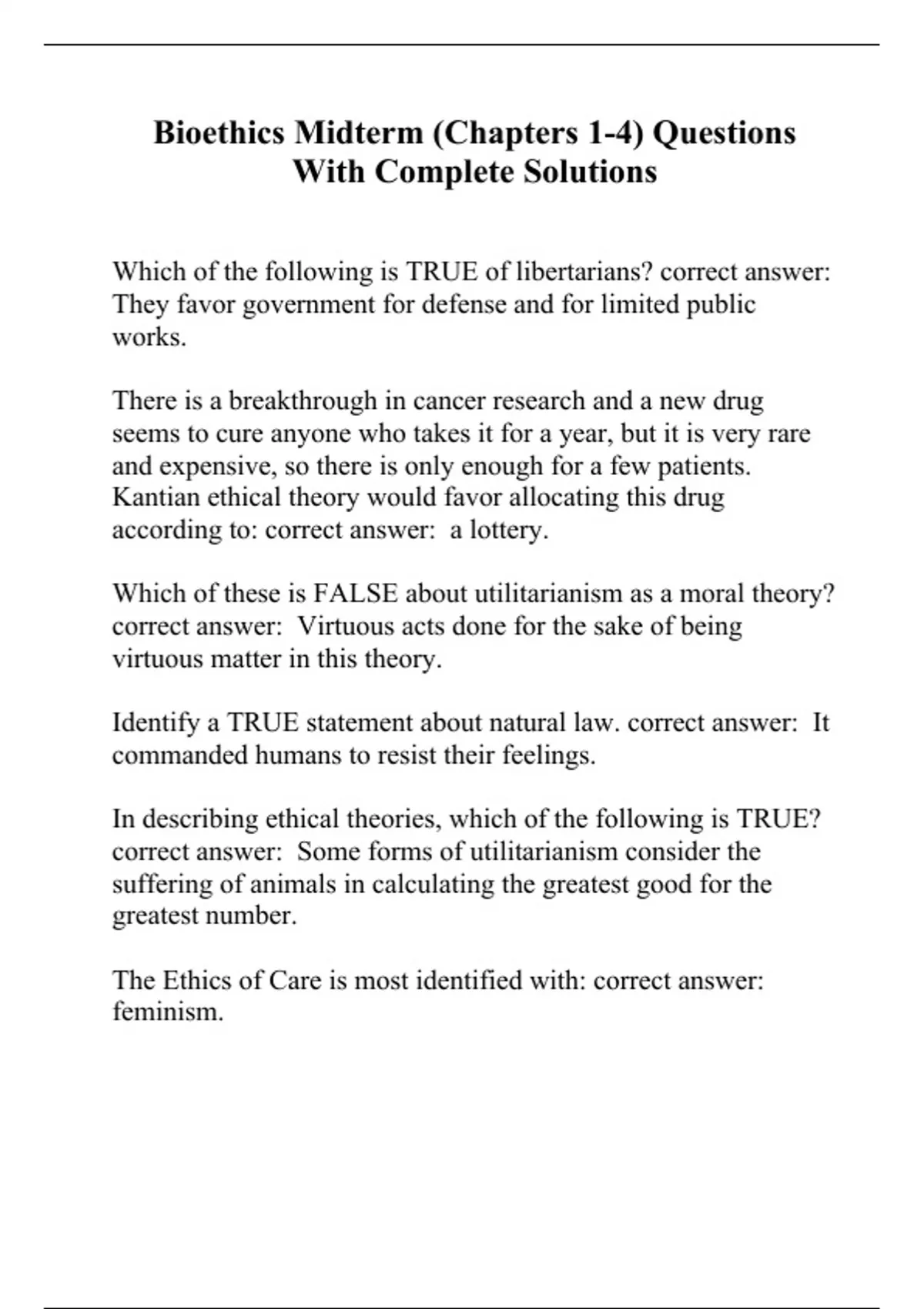 Bioethics Midterm (Chapters 1-4) Questions With Complete Solutions