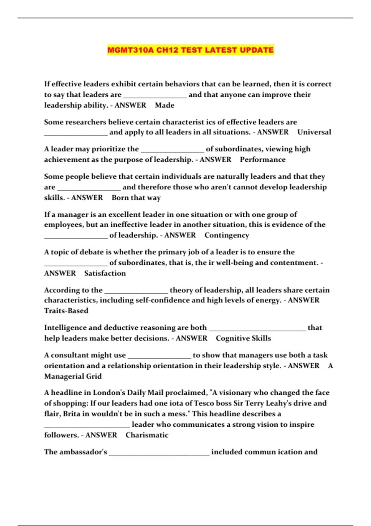 MGMT310 /MGMT 310APACKAGED EXAMS