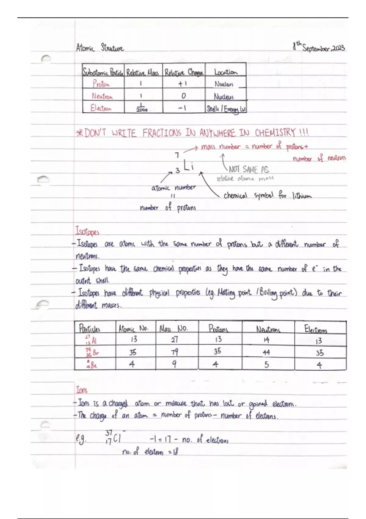 Chemistry class notes about Topic 2.1 Atoms and Reactions. Nice and clear.