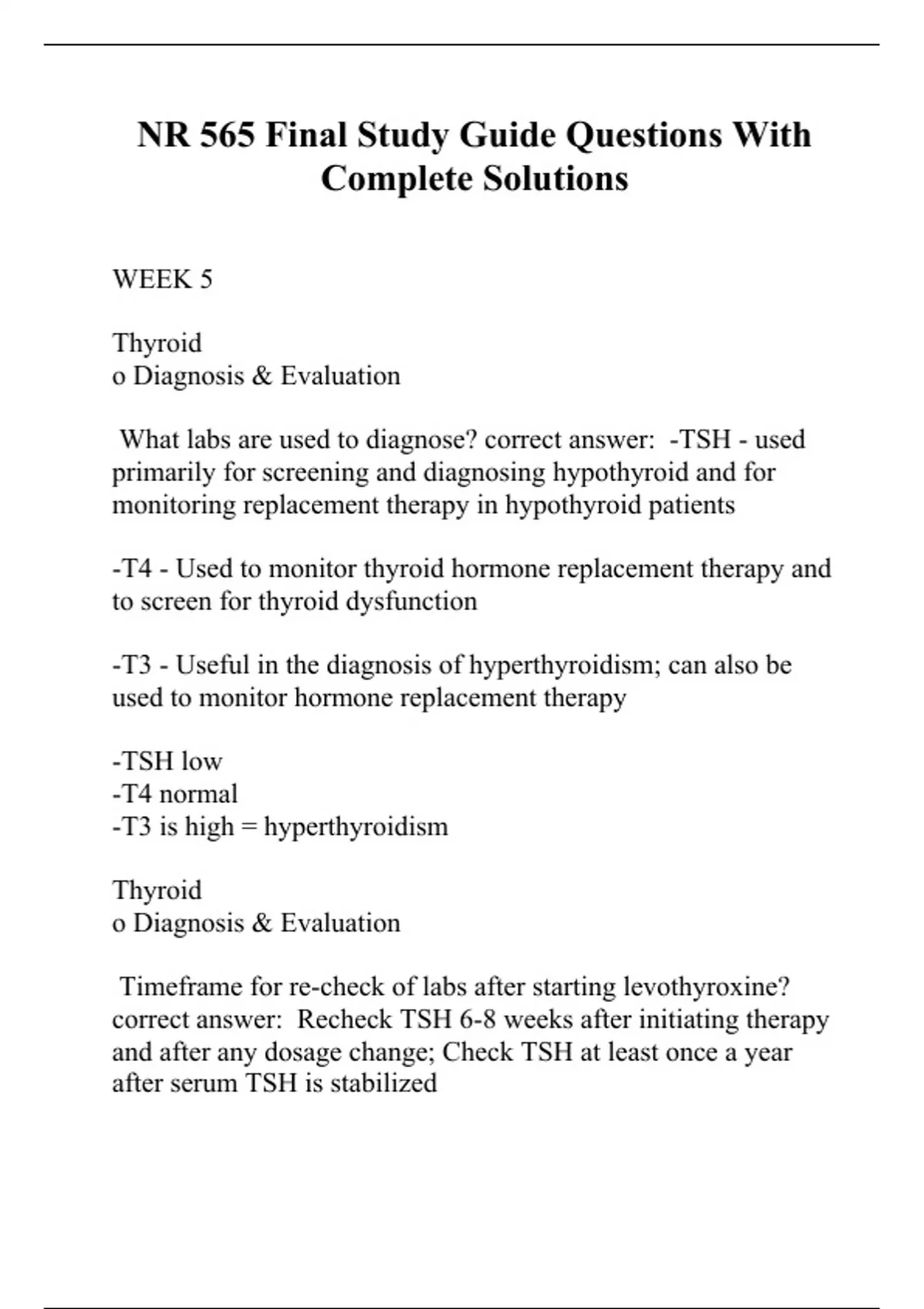 NR 565 Final Study Guide Questions With Complete Solutions