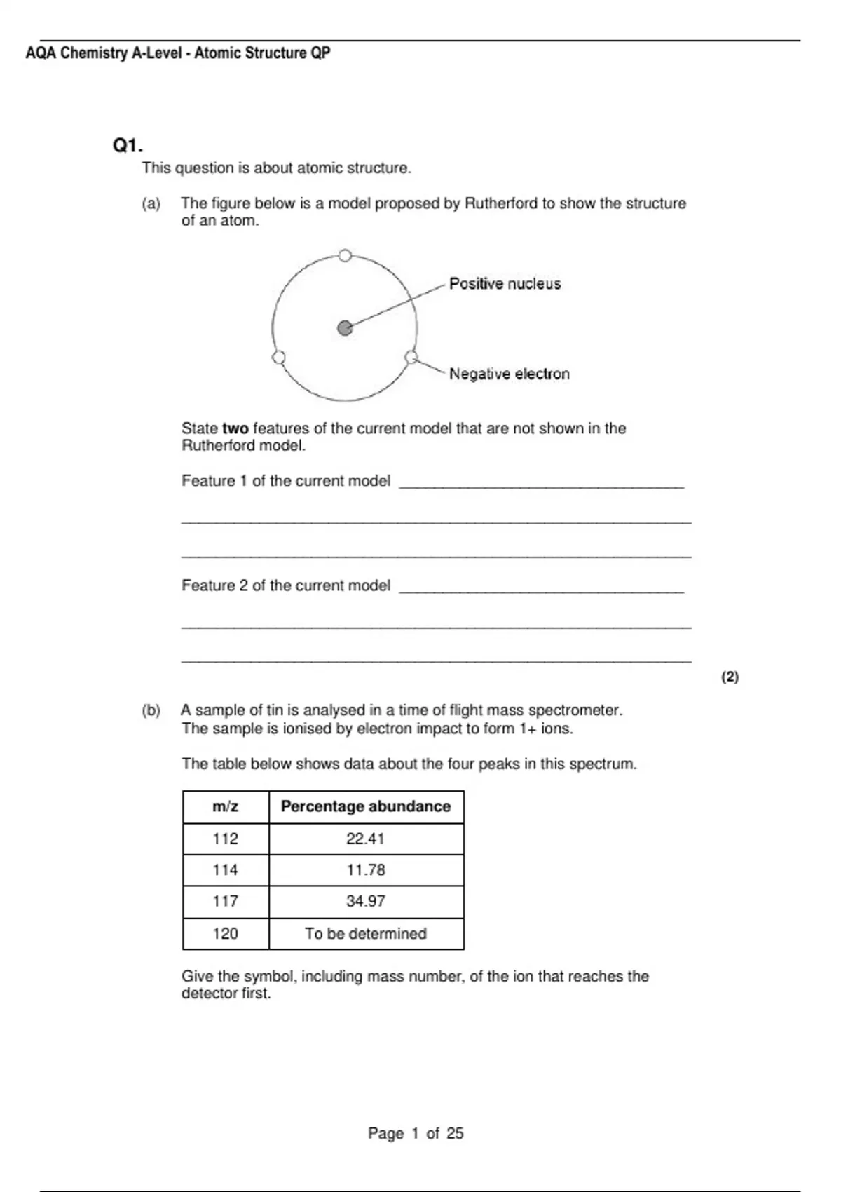 AQA Chemistry A-Level - Atomic Structure QP