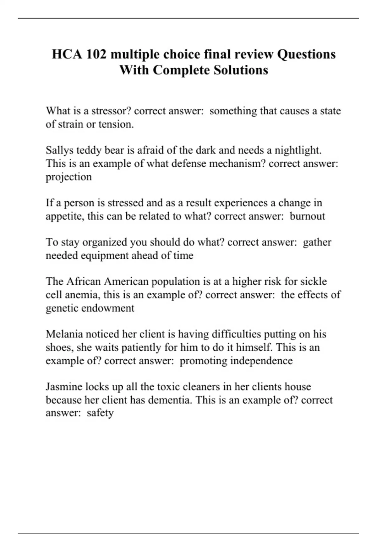 hca 102 multiple choice final review questions wit