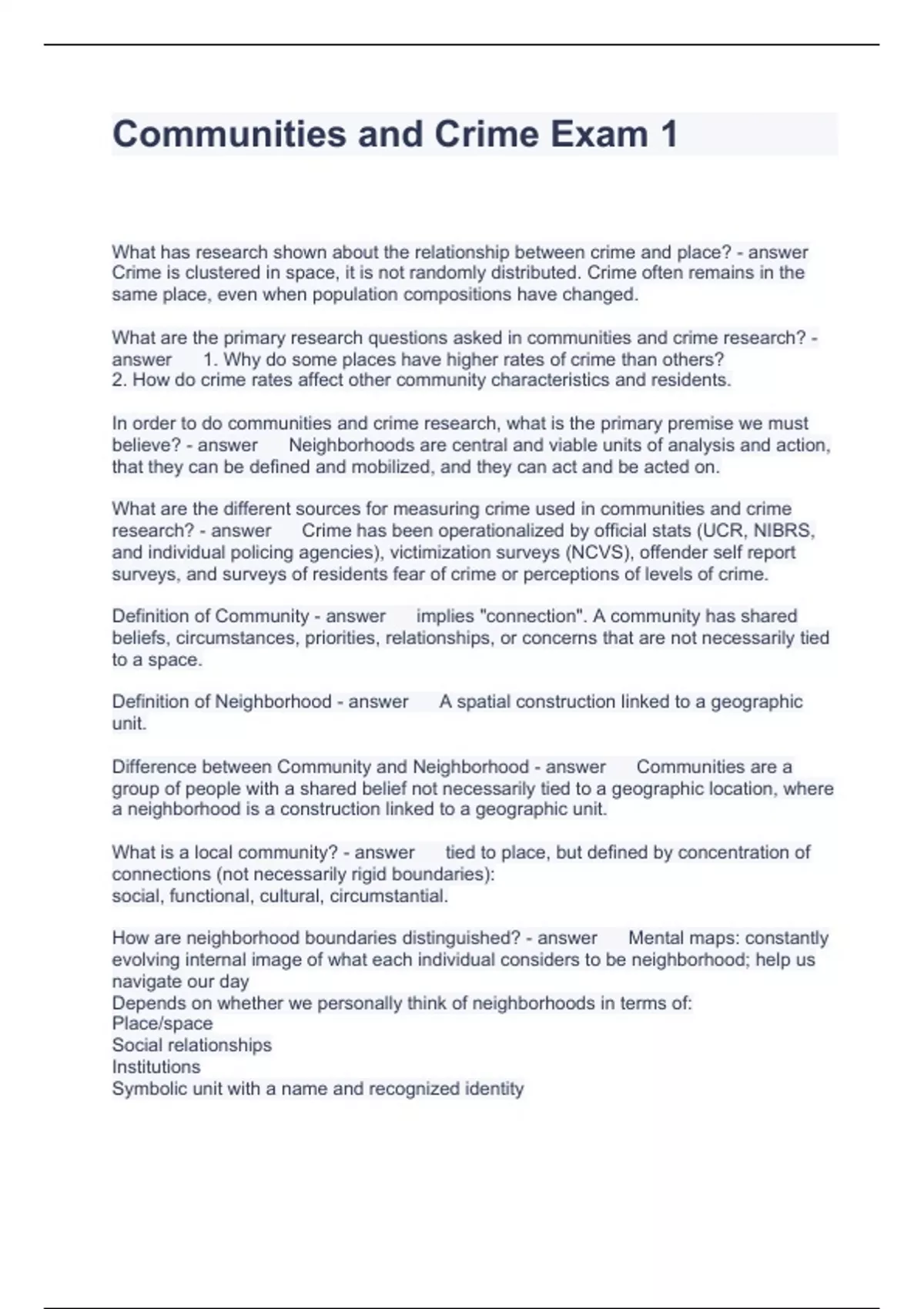 Communities and Crime Exam 1 Questions and Answers 100% Correct
