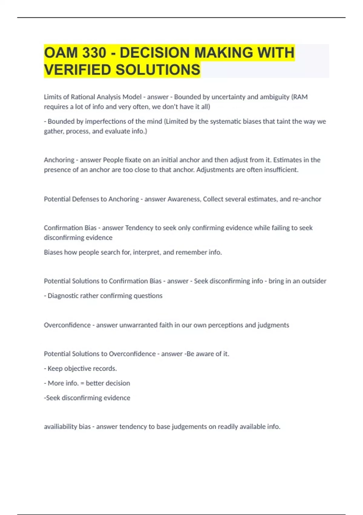 OAM 330 - DECISION MAKING WITH VERIFIED SOLUTIONS