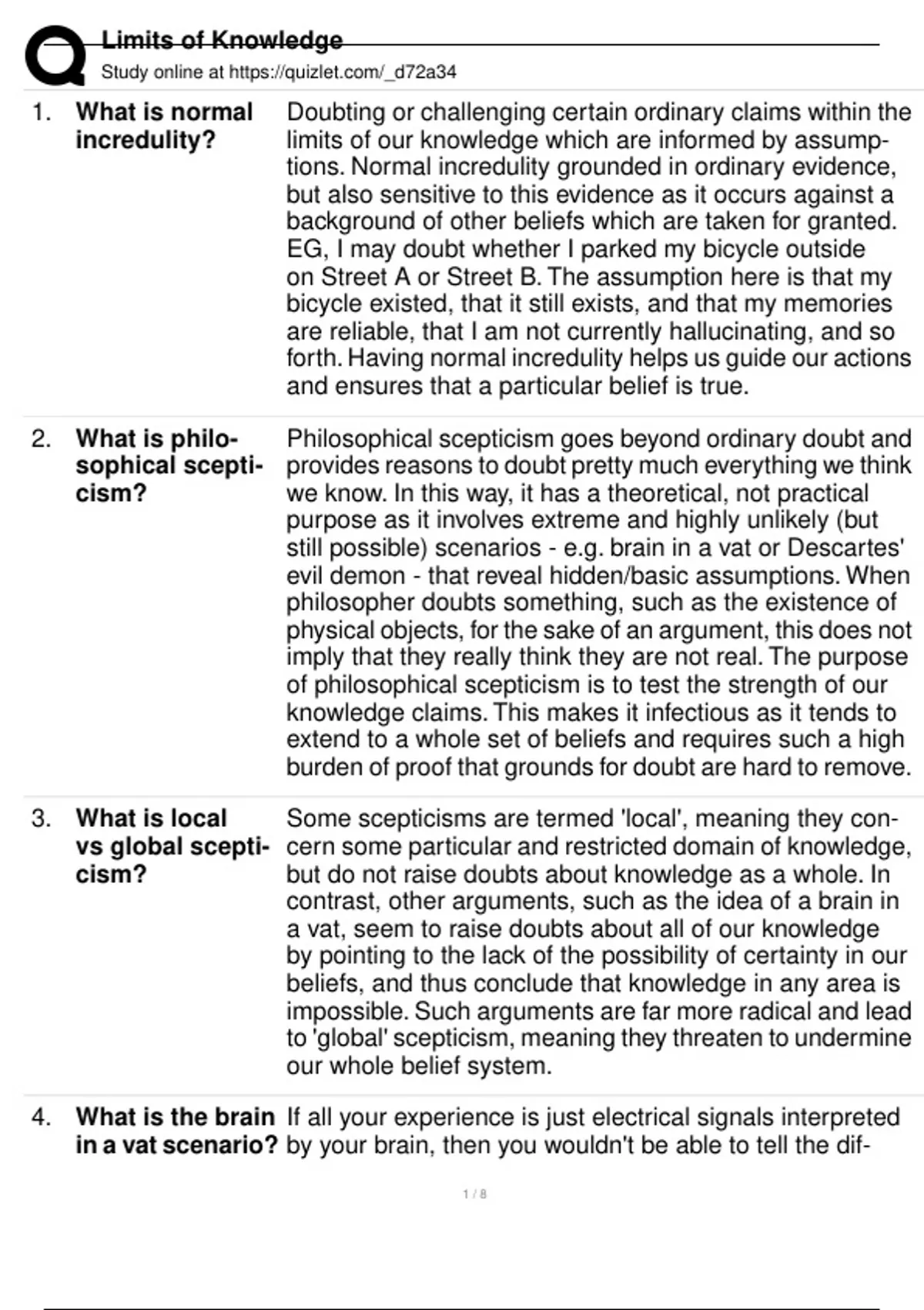 2. What is philo- Philosophical scepticism goes beyond ordinary doubt and