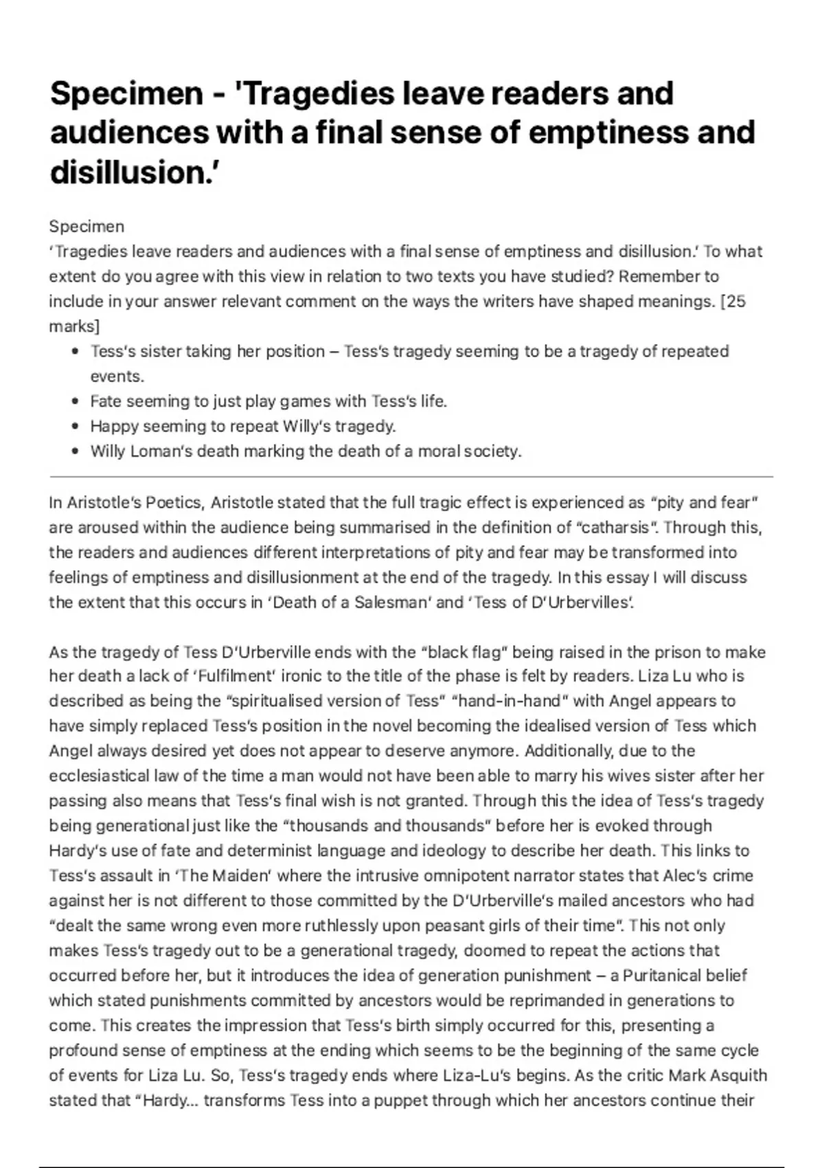 the extent that this occurs in ‘Death of a Salesmanʼ and ‘Tess of DʼUrbervillesʼ.