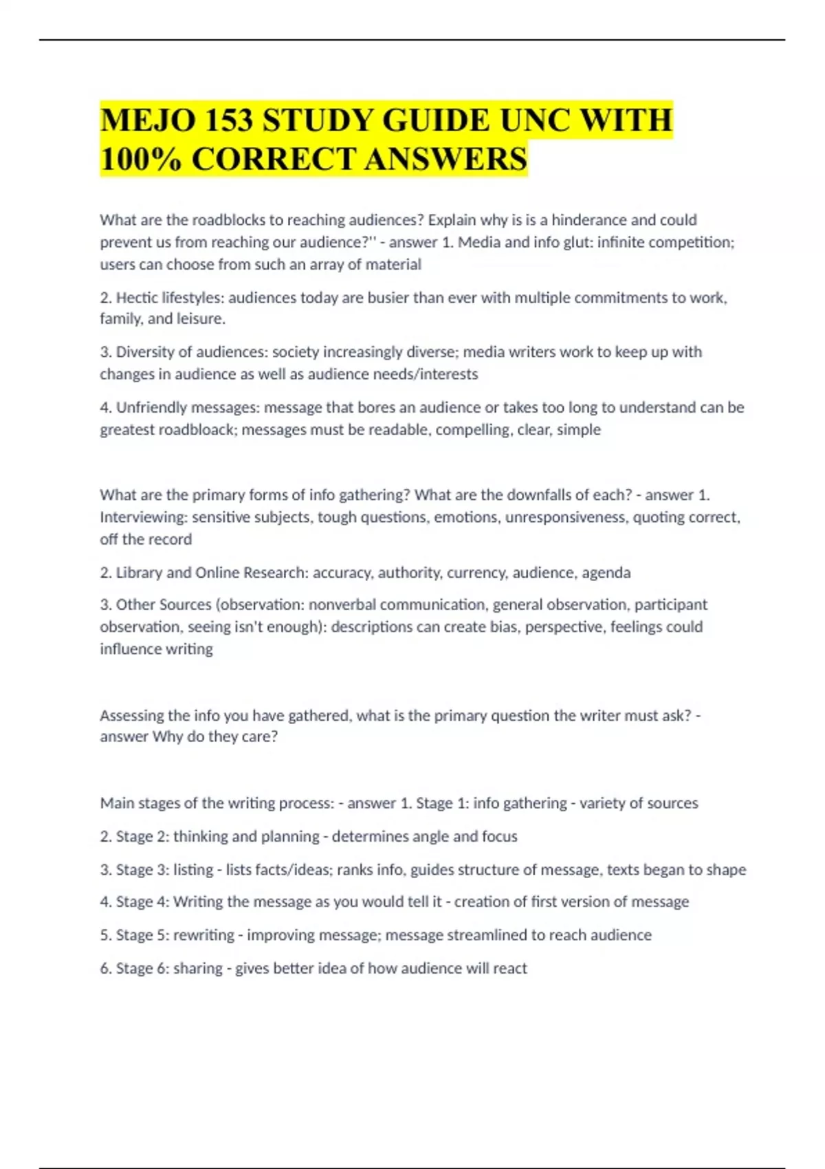 MEJO 153 STUDY GUIDE UNC WITH 100% CORRECT ANSWERS