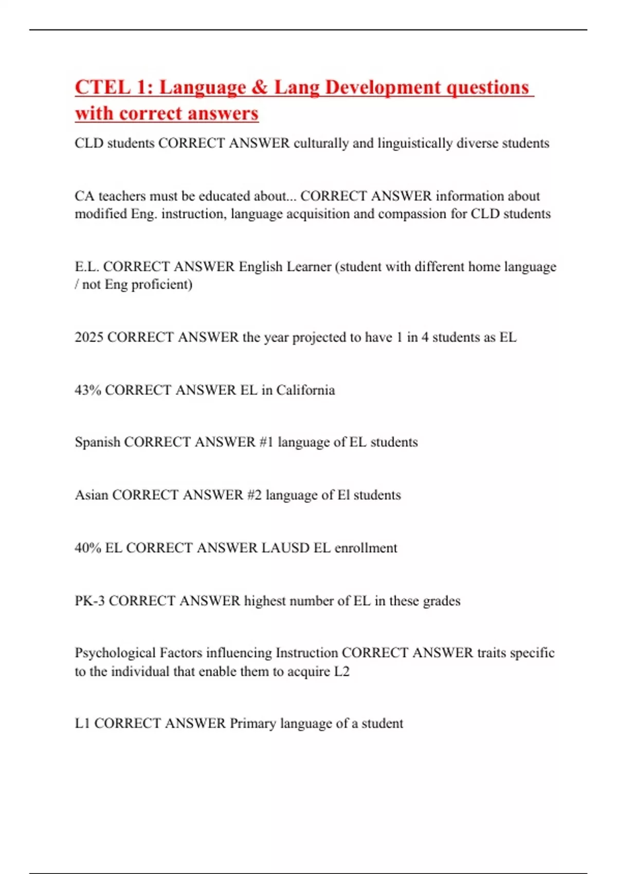 CTEL 1: Language & Lang Development questions with correct answers