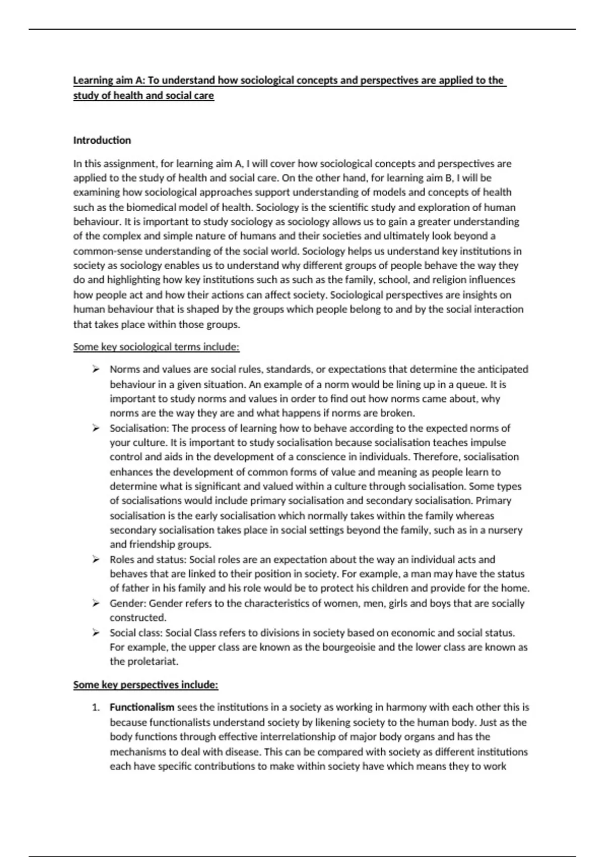 In this assignment, for learning aim A, I will cover how sociological concepts and perspectives are