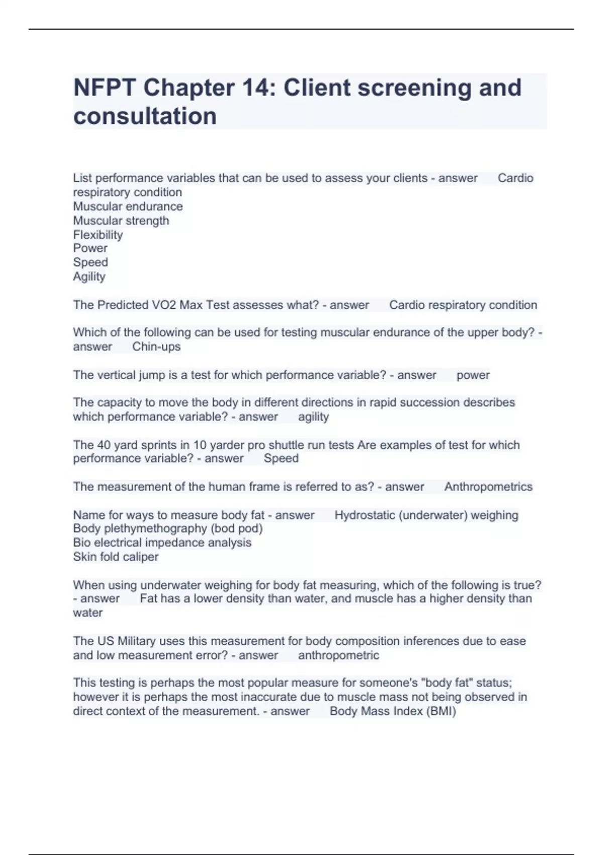 NFPT Chapter 14 Questions with solutions 2023