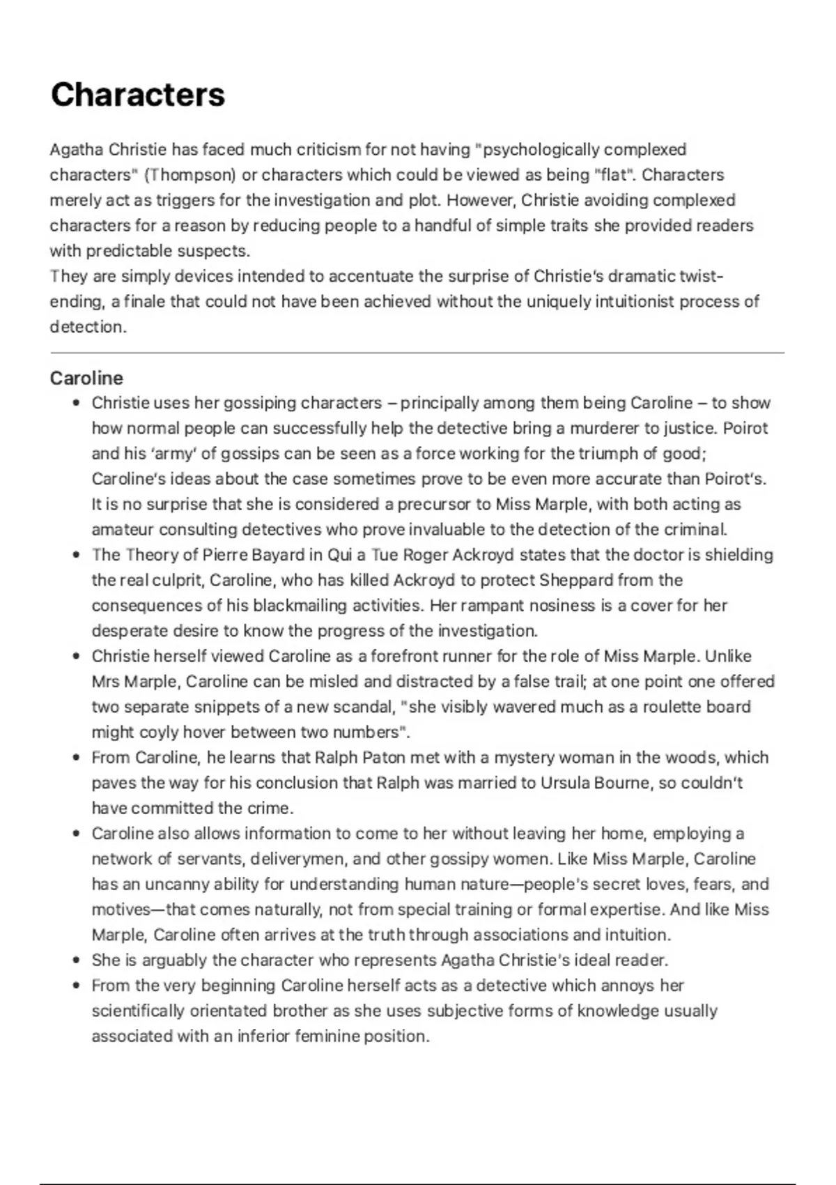Carolineʼs ideas about the case sometimes prove to be even more accurate than Poirotʼs.