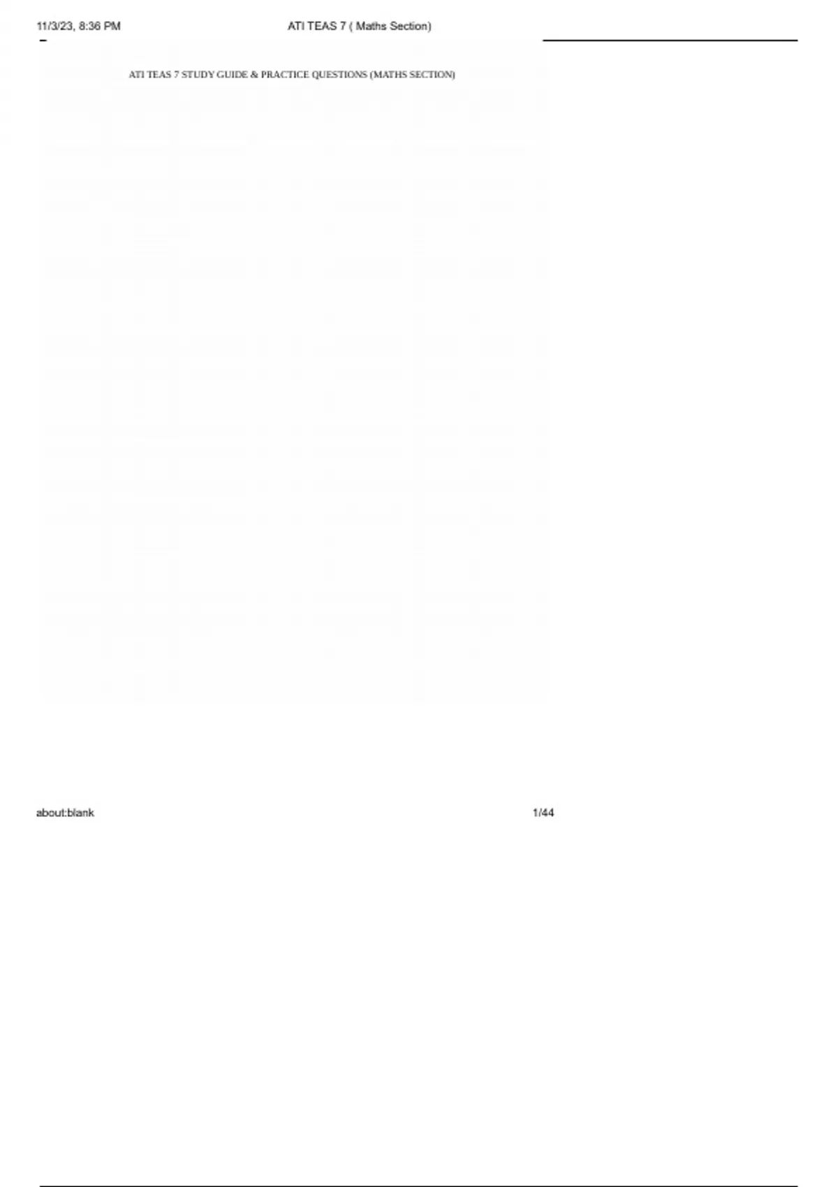 11/3/23, 8:36 PM ATI TEAS 7 ( Maths Section)