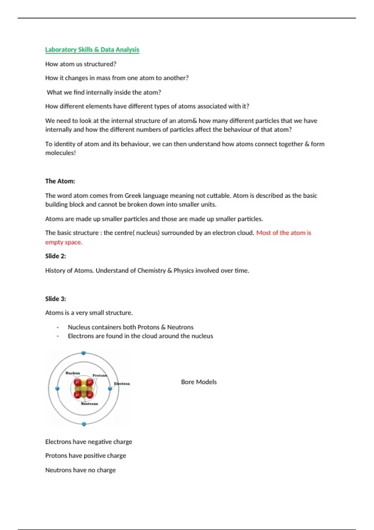History of Atoms. Understand of Chemistry & Physics involved over time.