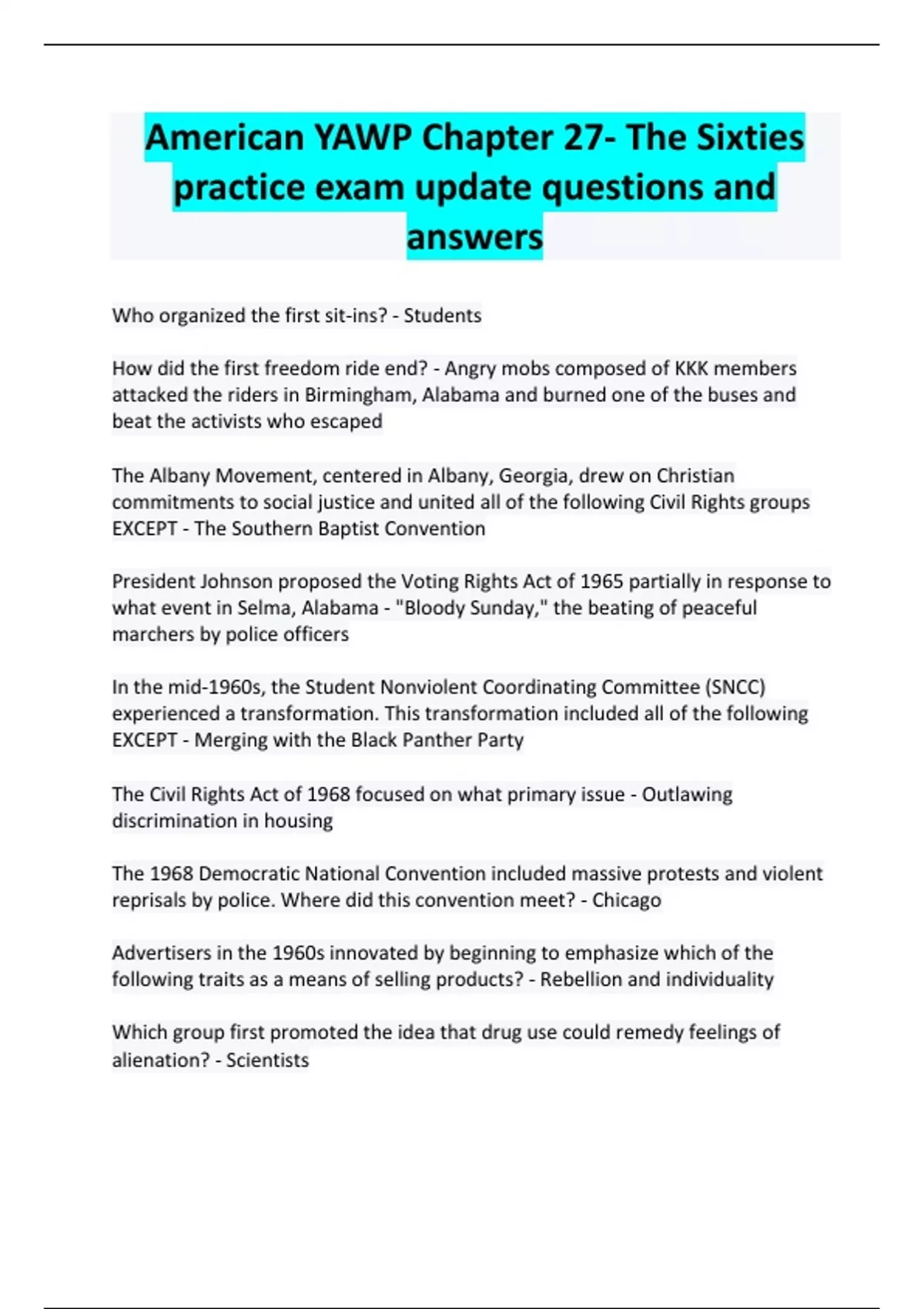 American YAWP Chapter 27- The Sixties practice exam update questions and answers