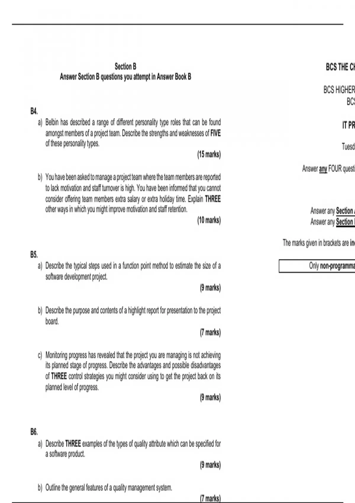 Answer Section B questions you attempt in Answer Book B
