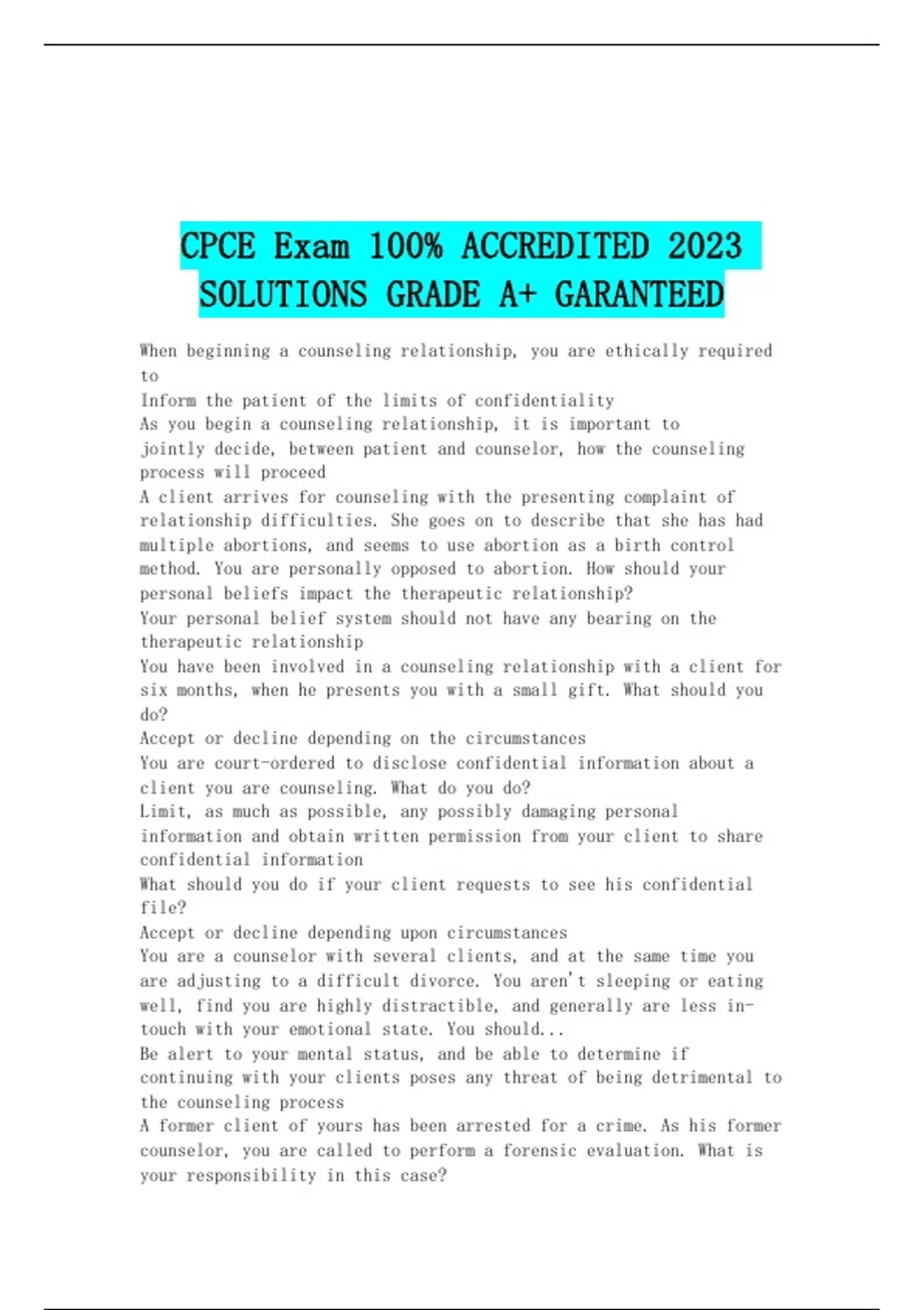 CPCE Exam 100% ACCREDITED 2023 SOLUTIONS GRADE A+ GARANTEED