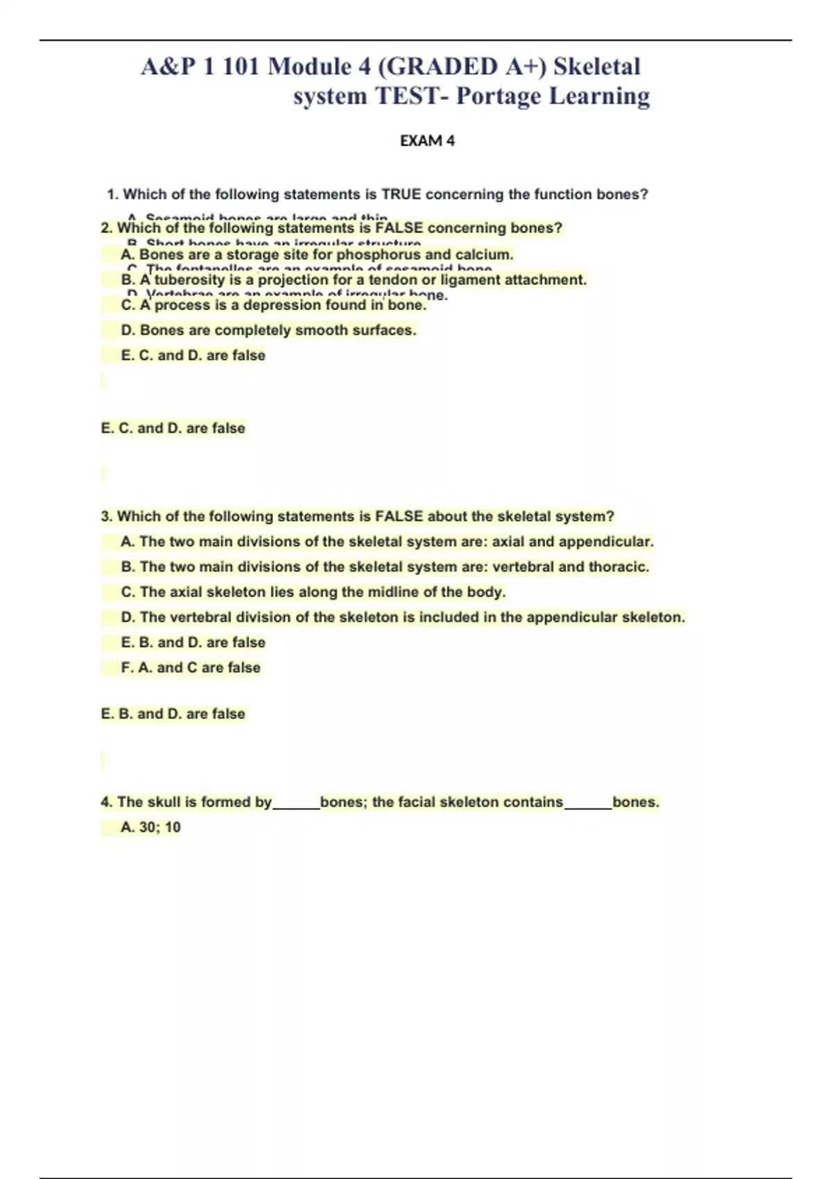 , A&P 1 101 Module 4 (GRADED A+) Skeletal