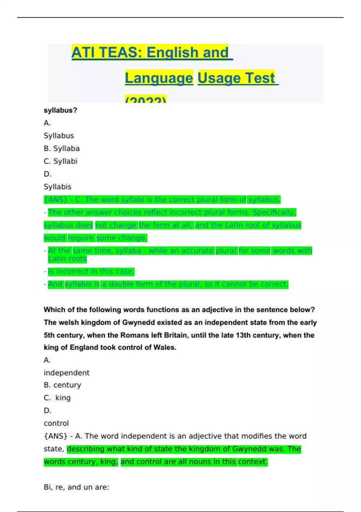 ATI TEAS ENGLISH LANGUAGE USAGE TEST 2022 ATI TEAS ENGLISH LANGUAGE USAGE TEST 2022 ATI TEAS ENGLISH LANGUAGE USAGE TEST 2022
