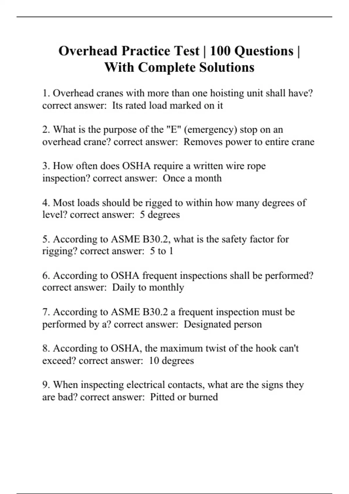 overhead practice test 100 questions with comp