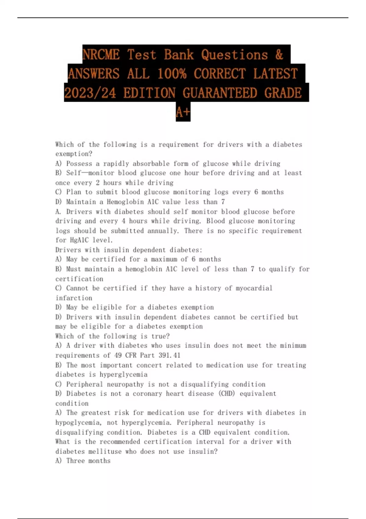 NRCME Test Bank Questions & ANSWERS ALL 100% CORRECT LATEST 2023/24 EDITION GUARANTEED GRADE A+