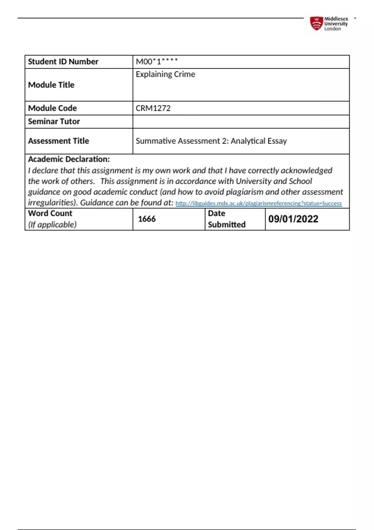 irregularities). Guidance can be found at: http://libguides.mdx.ac.uk/plagiarismreferencing?status=Success