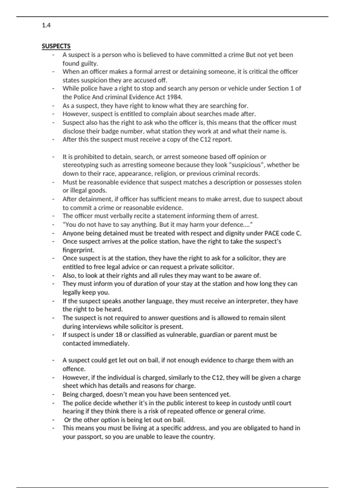 - Once suspect is at the station, they have the right to ask for a solicitor, they are