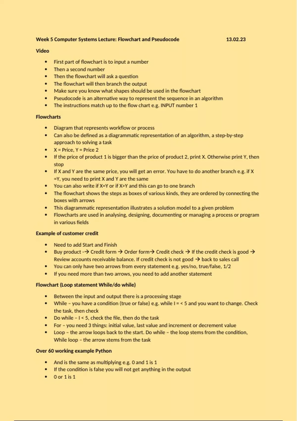 Week 5 Computer Systems Lecture: Flowchart and Pseudocode 13.02.23