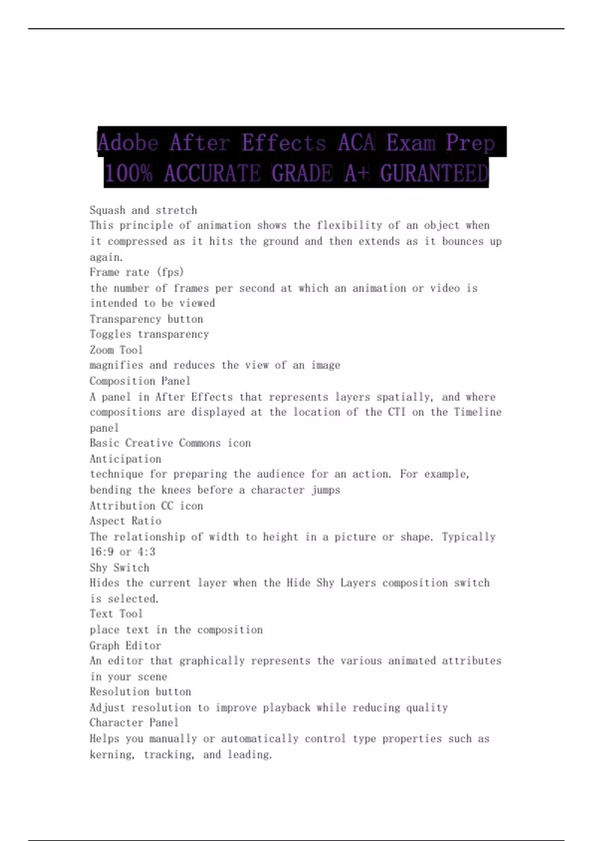 Adobe After Effects ACA Exam Prep 100% ACCURATE GRADE A+ GURANTEED