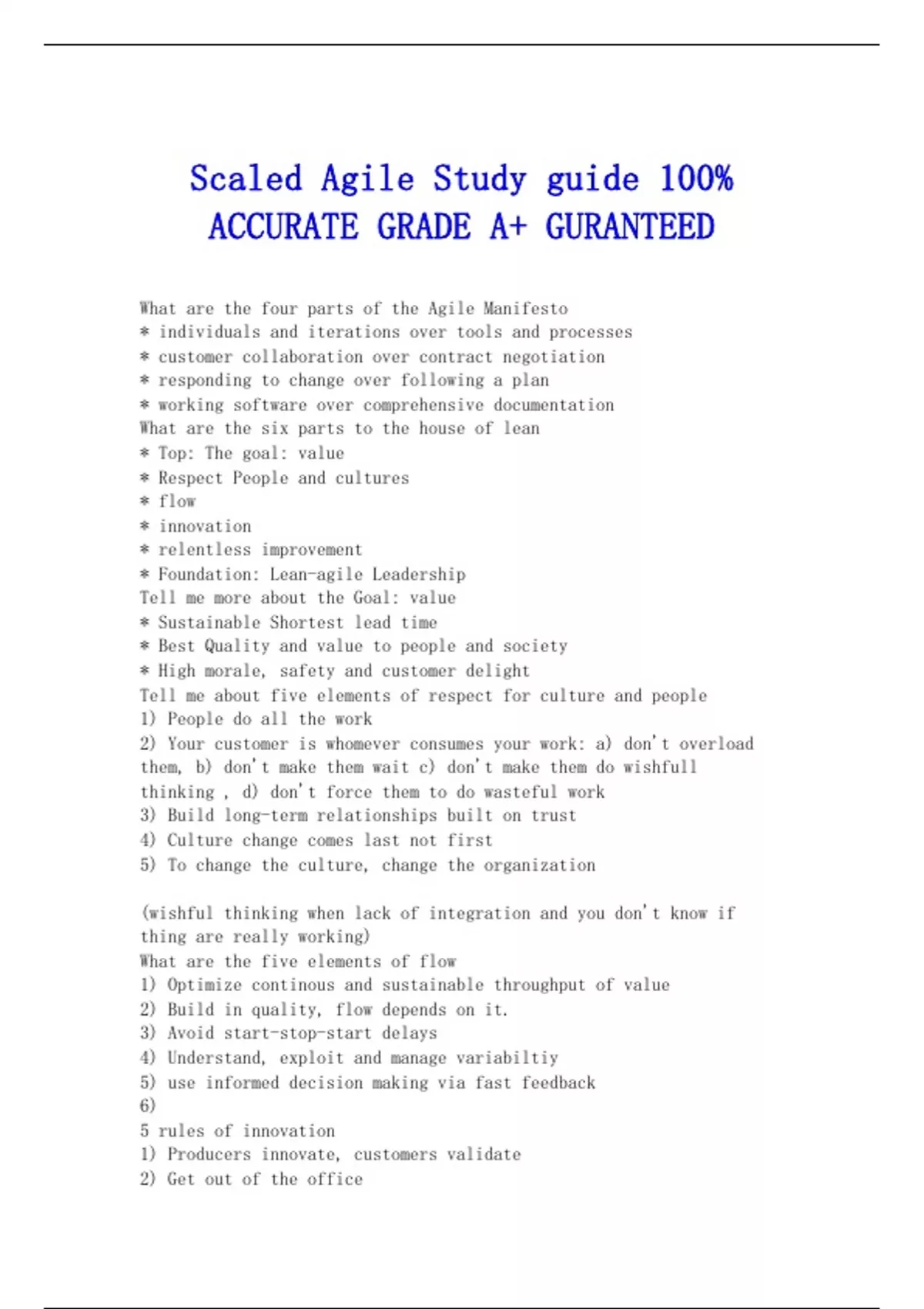 Scaled Agile Study guide 100% ACCURATE GRADE A+ GURANTEED