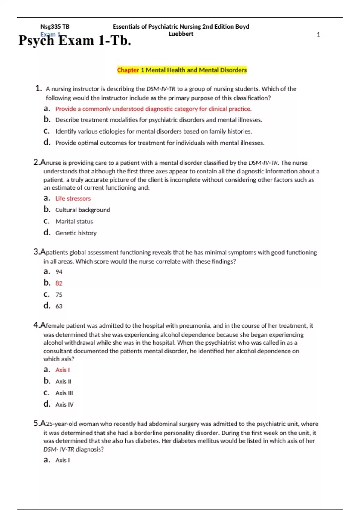 , Nsg335 TB Essentials of Psychiatric Nursing 2nd Edition Boyd