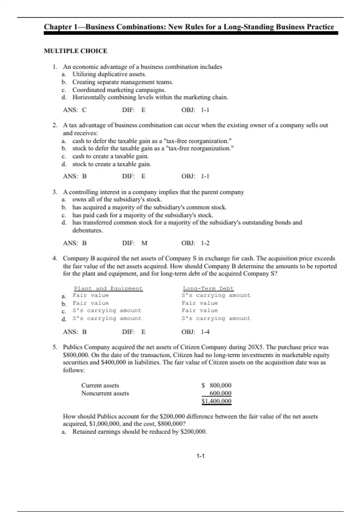 Advanced Accounting 10th Edition By Fischer Chapter 1 -Test Bank