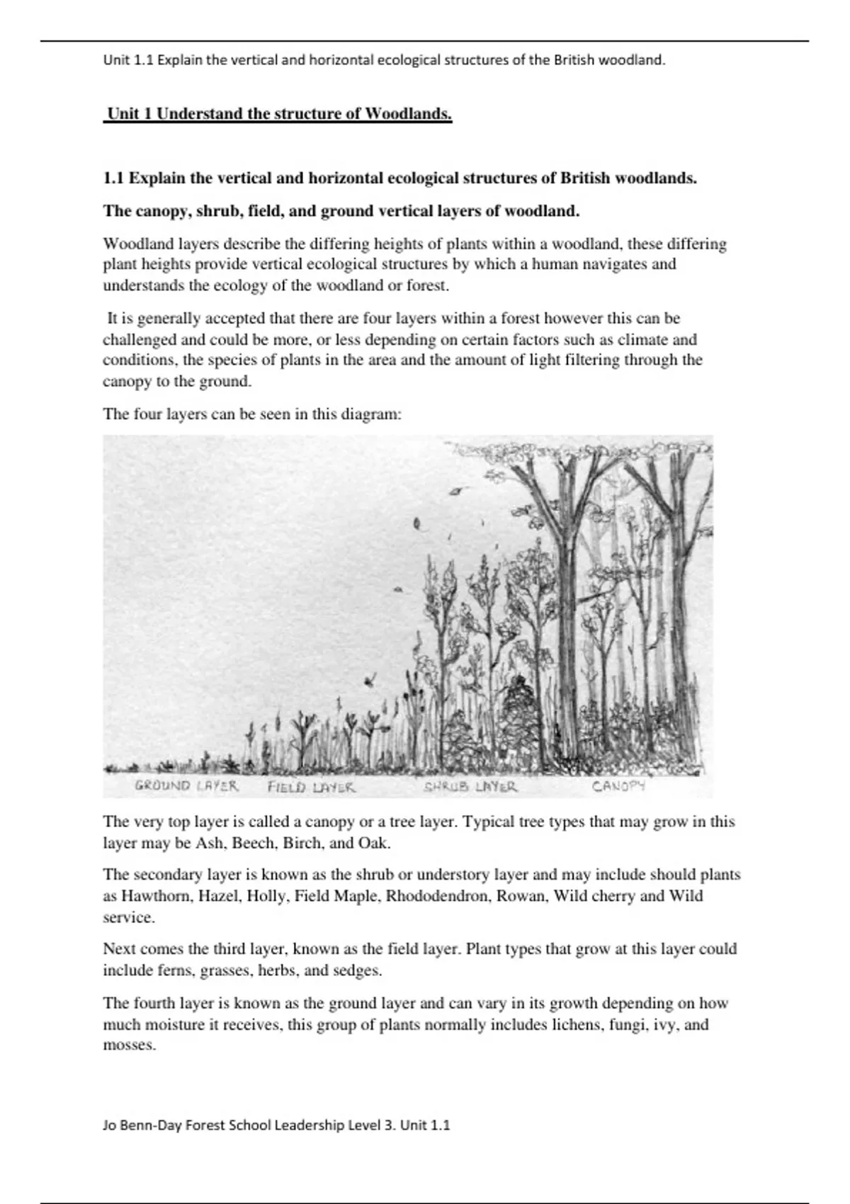 , Unit 1.1 Explain the vertical and horizontal ecological structures of the British woodland.