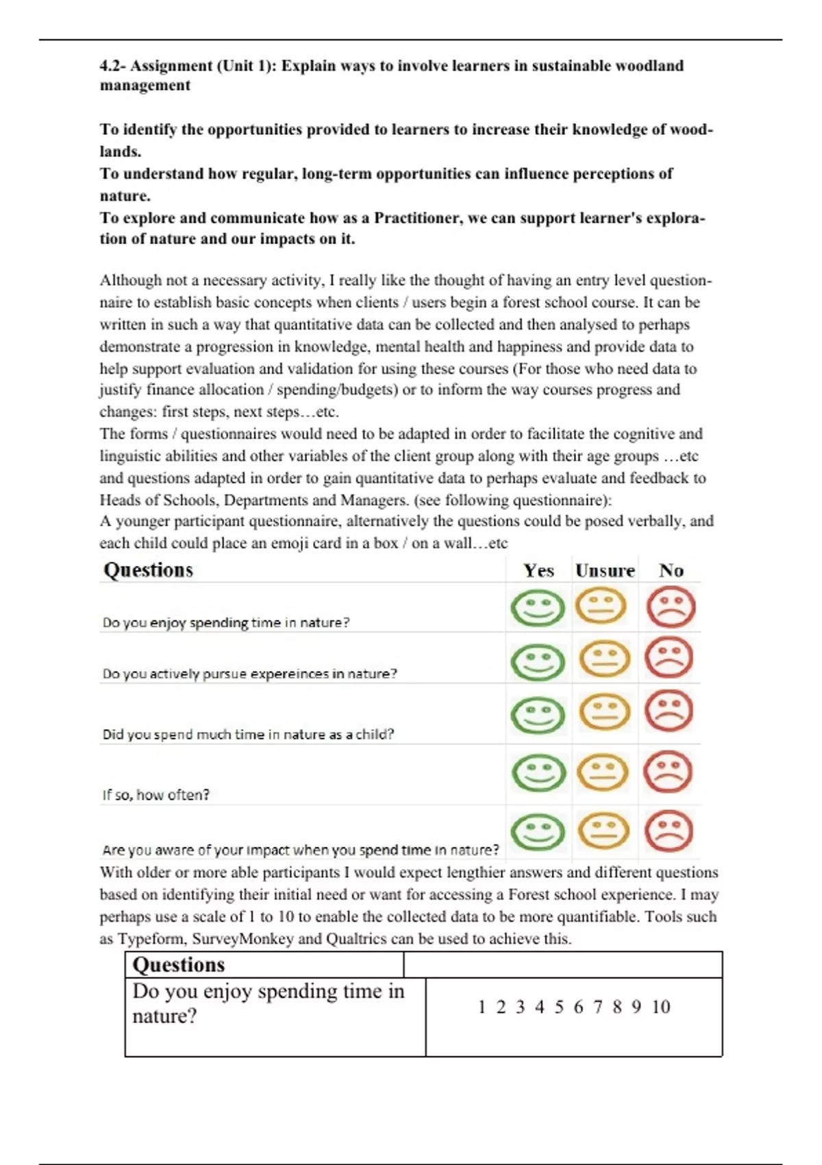 , 4.2- Assignment (Unit 1): Explain ways to involve learners in sustainable woodland