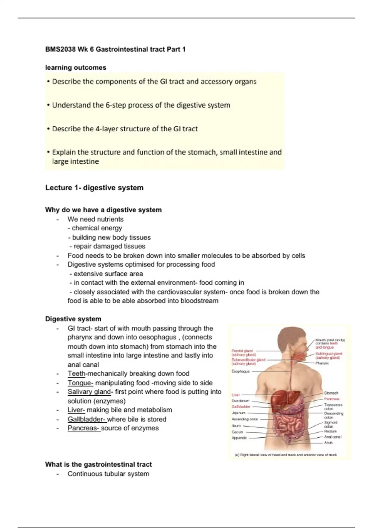BMS2038 Wk 6 Gastrointestinal tract Part 1