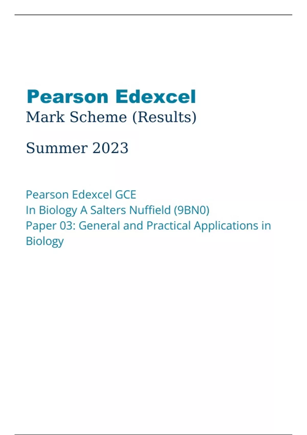 Pearson Edexcel Mark Scheme Summer 2023 Pearson Edexcel GCE In Biology A Paper 03 General and Practical Applications in Biology