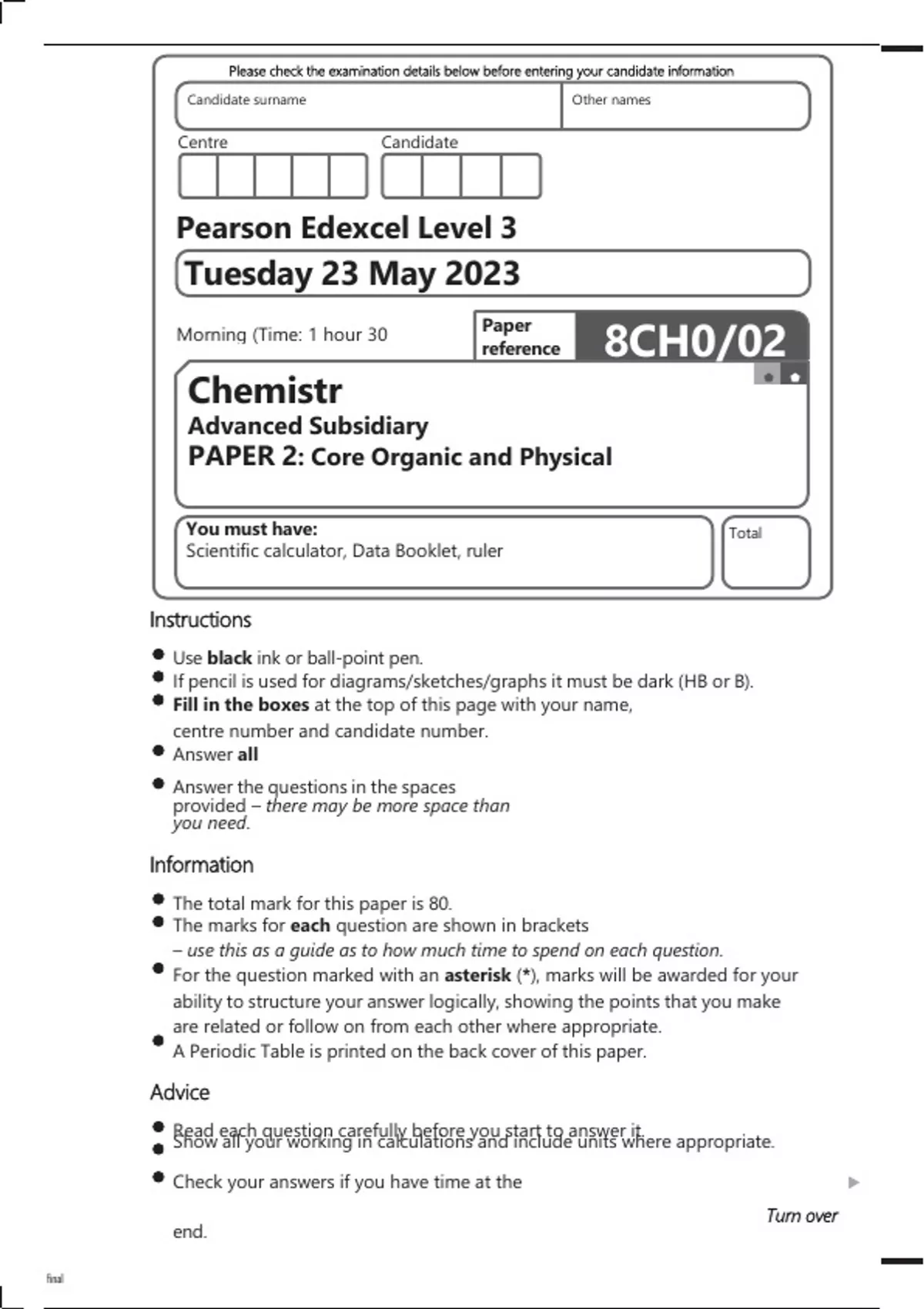 PAPER 2: Core Organic and Physical