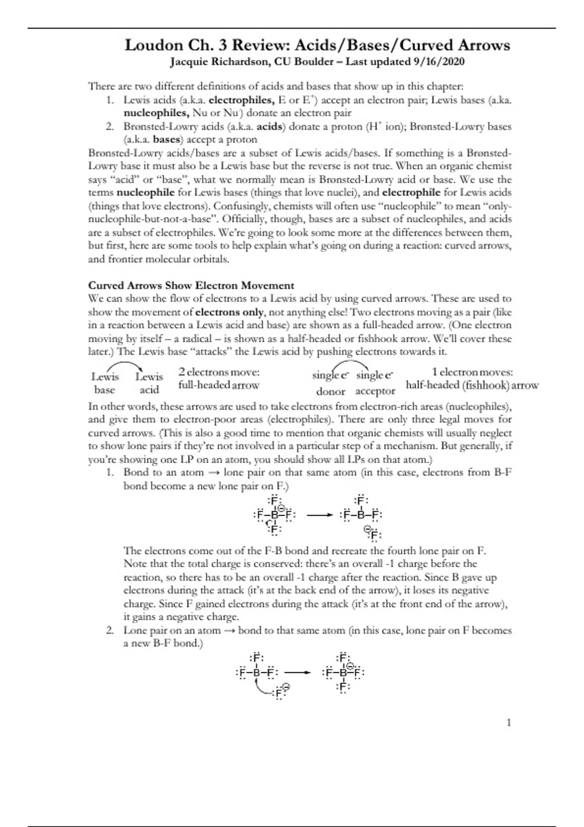 , Loudon Ch. 3 Review: Acids/Bases/Curved Arrows