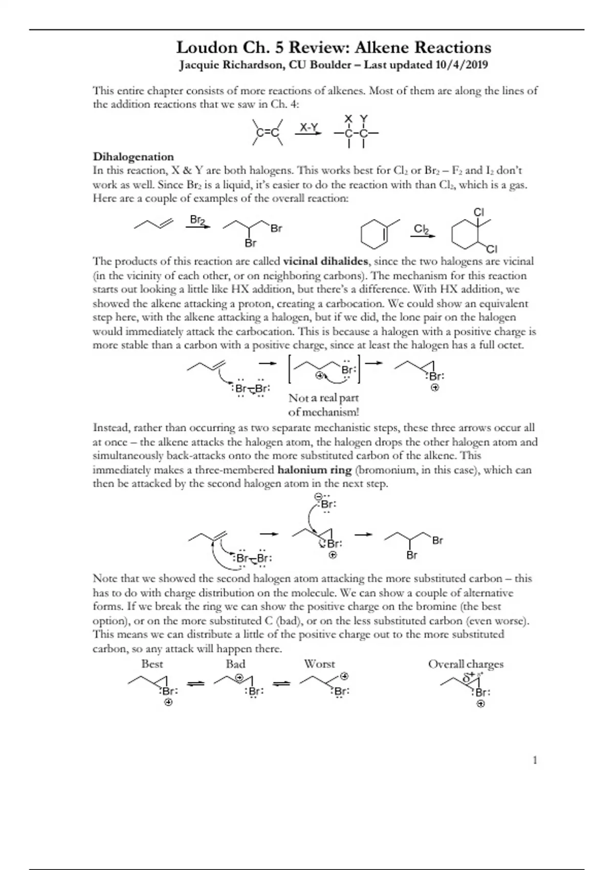 , Loudon Ch. 5 Review: Alkene Reactions